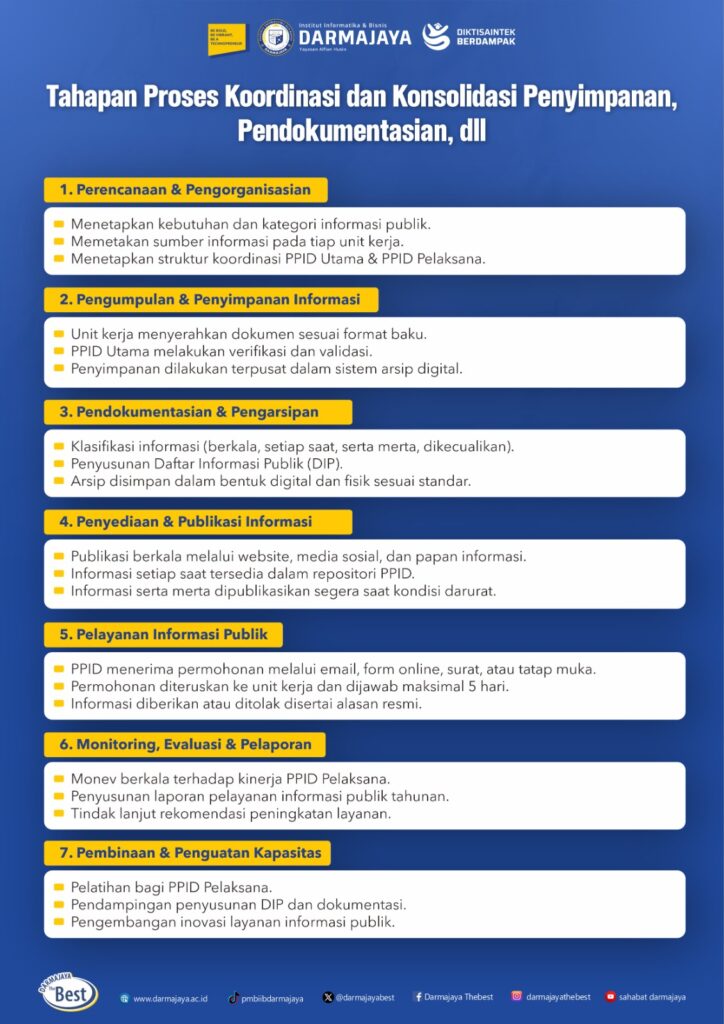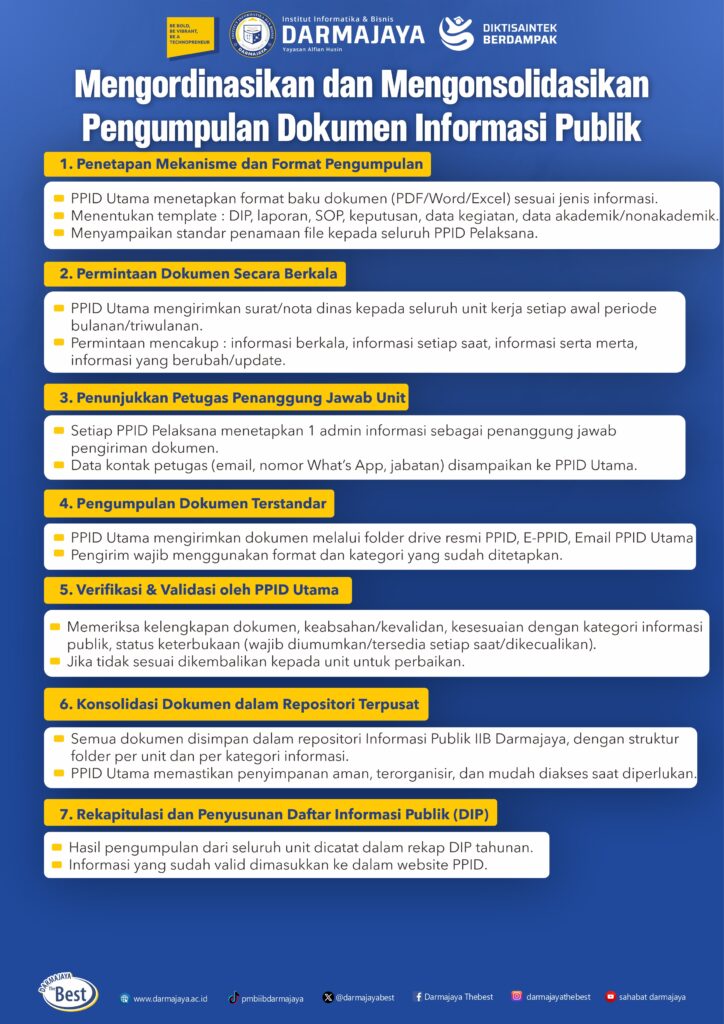 Kegiatan PPID Mengoordinasikan dan mengonsolidasikan pengumpulan dokumen Informasi Publik dari PPID Pelaksana dan/atau Petugas Pelayanan Informasi Mengoordinasikan dan mengonsolidasikan proses penyimpanan, pendokumentasian, penyediaan, dan pelayanan Informasi Publik Menugaskan PPID Pelaksana dan/atau Petugas Pelayanan mengelola Informasi untuk memelihara, membuat, dan/atau memutakhirkan Daftar Informasi Publik